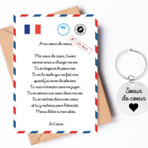 Porte-Clés Cabochon Carte avec Enveloppe, Cadeau pour sa sœur de coeur Cadeau Anniversaire Noël Carte définition Soeur de coeur
