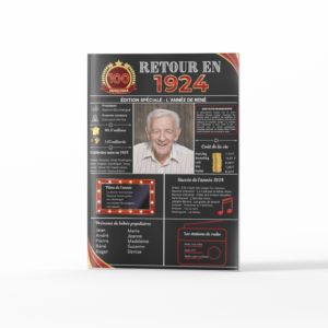 Livre d’Or Noir Rouge Personnalisé Retour 1924 avec Photo et Texte : Idée Cadeau Unique pour Anniversaire, Mariage, Noël, 100 Ans