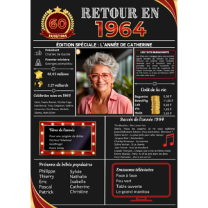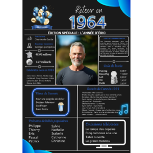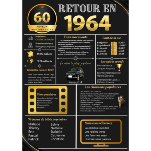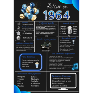 Affiche anniversaire 1964 personnalisable disponible pour les années 1924 à 2024 imprimé A4 A3 sans cadre Idée cadeau