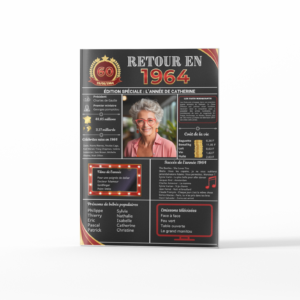 Livre d’Or Noir Rouge Personnalisé Retour 1964 avec Photo et Texte : Idée Cadeau Unique pour Anniversaire, Mariage, Noël, 60 Ans