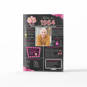 Livre d’Or Noir Rose Personnalisé Retour 1964 avec Photo et Texte : Idée Cadeau Unique pour Anniversaire, Mariage, Noël, 60 Ans