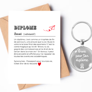 Porte-Clés cabochon Carte avec Enveloppe, Cadeau pour un diplomé Cadeau Récompense Anniversaire Noël Carte définition Diplomé