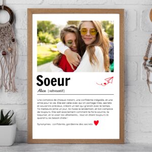 Affiche définition soeur frere affiche A4 ou A3 sans cadre personnalisée photo texte cadeau anniversaire mariage