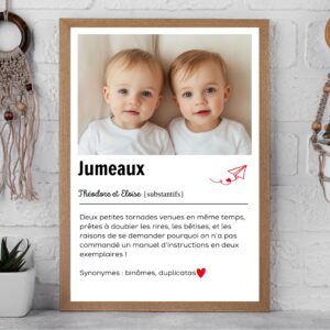 Affiche definition jumeaux affiche A4 ou A3 sans cadre personnalisée photo texte cadeau anniversaire mariage