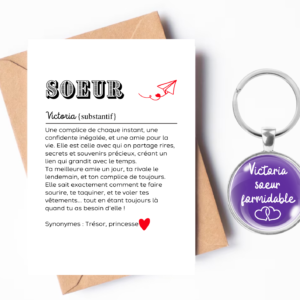 Porte-Clés cabochon Carte avec Enveloppe, Cadeau pour un soeur Cadeau Anniversaire Carte définition soeur