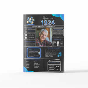 Livre d’Or Noir Bleu Personnalisé Retour 1924 avec Photo et Texte : Idée Cadeau Unique pour Anniversaire, Mariage, Noël, 100 Ans