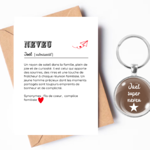 Porte-Clés cabochon Carte avec Enveloppe, Cadeau pour son neveu Cadeau Anniversaire Noël Carte définition Neveu