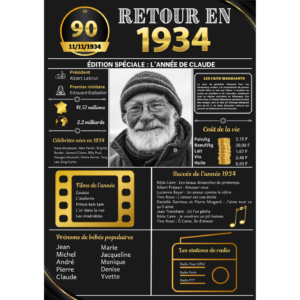 Affiche anniversaire 1934 personnalisable disponible pour les années 1924 à 2014 Format numérique ou imprimé A4 A3 sans cadre Idée cadeau
