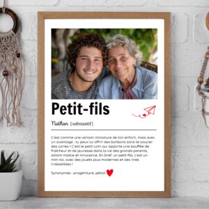 Affiche définition fils petit-fils affiche A4 ou A3 sans cadre personnalisée photo texte cadeau anniversaire mariage