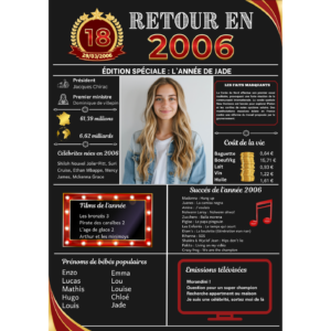 Affiche anniversaire 2006 personnalisable disponible pour les années 1924 à 2014 imprimé A4 A3 sans cadre Idée cadeau