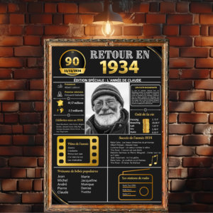 Affiche anniversaire 1934 disponible pour les années 1924 à 2014 Format numérique uniquement Idée cadeau mariage noel 90 ans