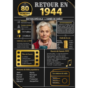 Affiche anniversaire 1944 disponible pour les années 1924 à 2014 Format numérique uniquement Idée cadeau mariage noel 80 ans