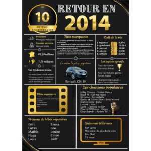 Affiche anniversaire 2014 disponible pour les années 1924 à 2014 Format numérique uniquement Idée cadeau anniversaire noel