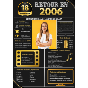 Affiche anniversaire 2006 disponible pour les années 1924 à 2014 imprimé A4 A3 sans cadre Idée cadeau anniversaire noel