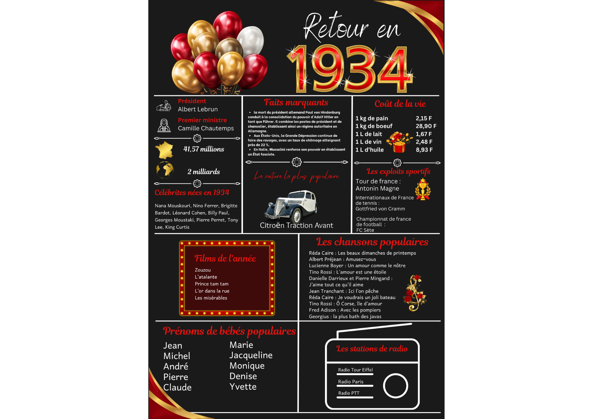 Nous proposons des affiches anniversaires pour l’année 1934.