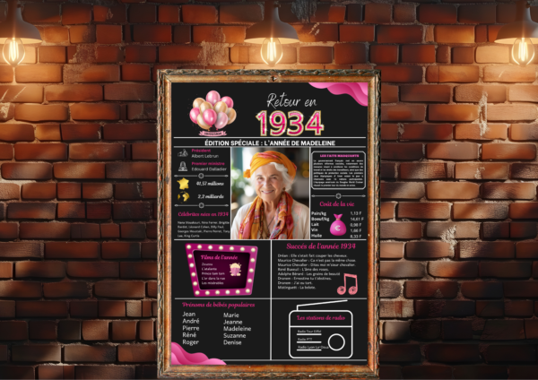 Soyez le premier à laisser votre avis sur “Affiche anniversaire 1934 personnalisable disponible pour les années 1924 à 2014 imprimé A4 A3 sans cadre Idée cadeau”