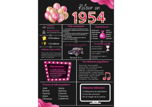 Soyez le premier à laisser votre avis sur “Affiche anniversaire 1954 disponible pour les années 1924 à 2014 Format numérique uniquement Idée cadeau mariage noel”