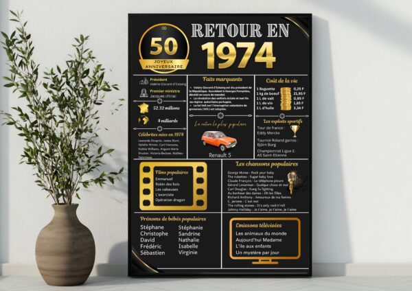 Soyez le premier à laisser votre avis sur “Affiche anniversaire 1974 personnalisable disponible pour les années 1924 à 2014 Format numérique uniquement Idée cadeau (Copy) (Copy)”
