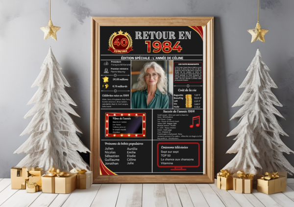 💝 Cette affiche personnalisable saura toucher son destinataire droit au coeur en lui remémorant les événements et les moments clés de son année de naissance, de mariage, de rencontre, etc.