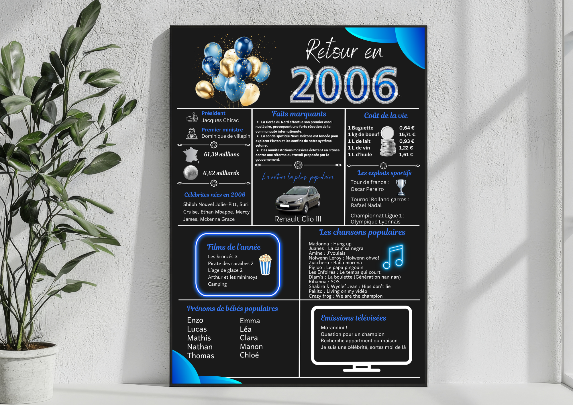 Affiche anniversaire 2006 disponible pour les années 1924 à 2014 Format numérique uniquement sans cadre Idée cadeau mariage noel