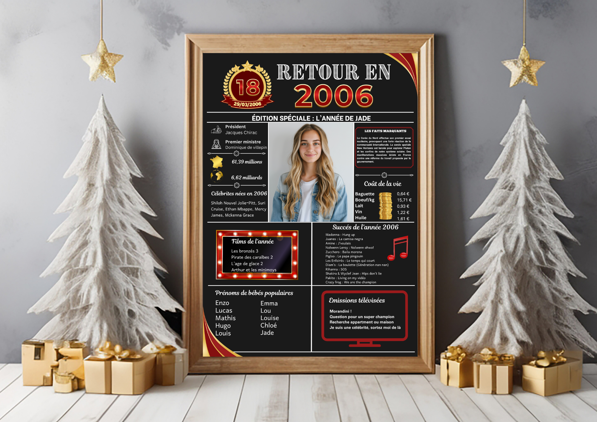 Nous proposons des affiches anniversaires pour l’année 2006 personnalisables avec l’ajout de photos et de textes. Nous proposons des affiches anniversaires pour toutes les années de 1924 à 2014. Si vous souhaitez une affiche pour une année, merci d’indiquer les informations de personnalisation au moment de la commande.