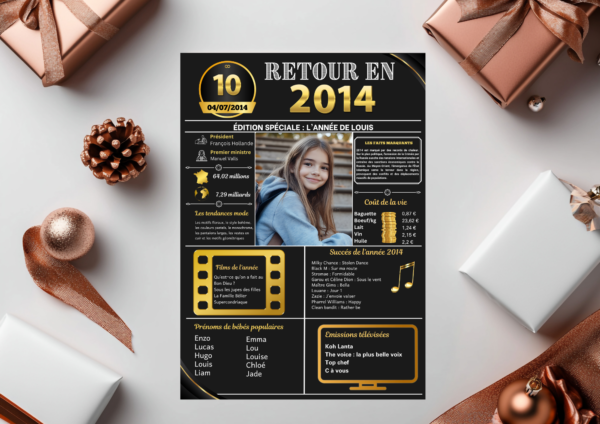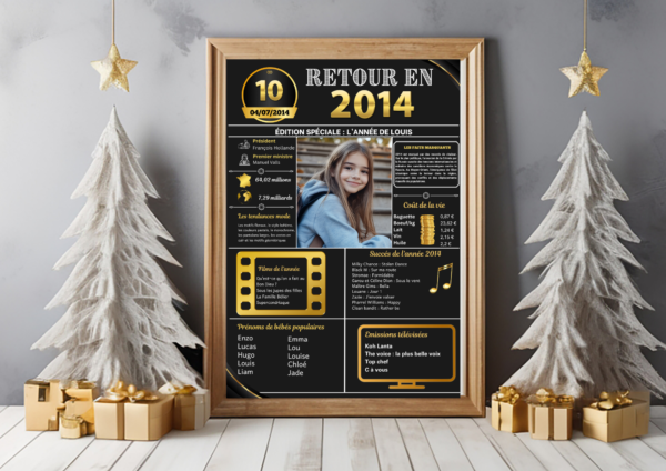 💝 Cette affiche personnalisable saura toucher son destinataire droit au coeur en lui remémorant les événements et les moments clés de son année de naissance, de mariage, de rencontre, etc.