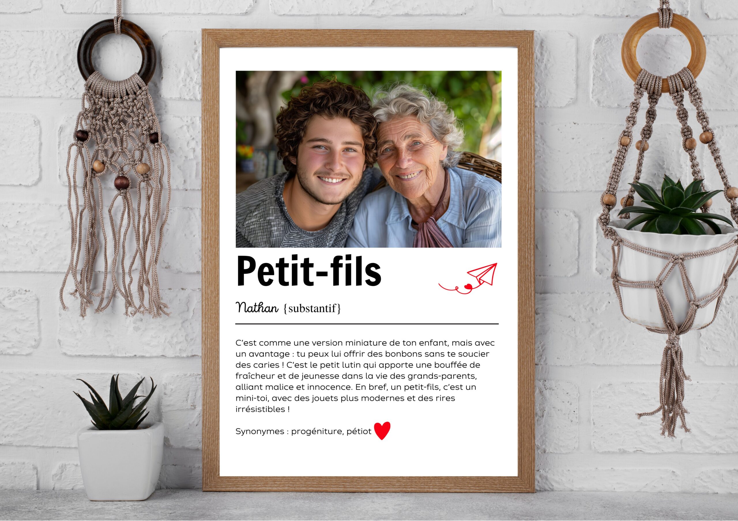 Affiche définition fils petit-fils affiche A4 ou A3 sans cadre personnalisée photo texte cadeau anniversaire mariage
