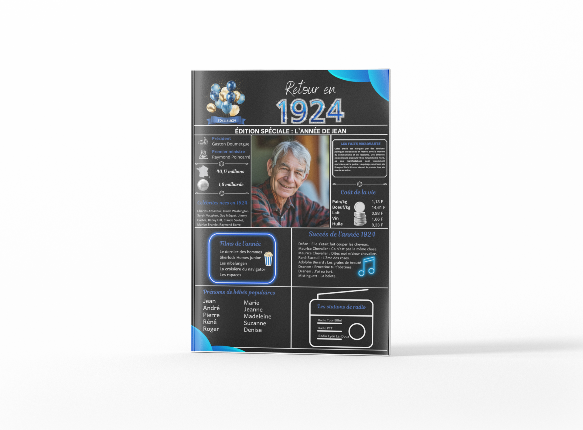 en couverture une affiche rétrospective des événements marquants de l’année de naissance du