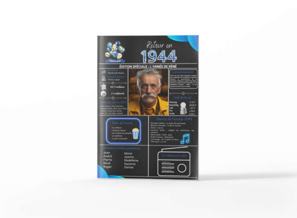 Livre d’Or Noir Bleu Personnalisé Retour 1944 avec Photo et Texte : Idée Cadeau Unique pour Anniversaire, Mariage, Noël, 80 Ans