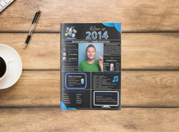Livre d’Or Noir Bleu Personnalisé Retour 2014 avec Photo et Texte : Idée Cadeau Unique pour Anniversaire, Mariage, Noël, 10 Ans