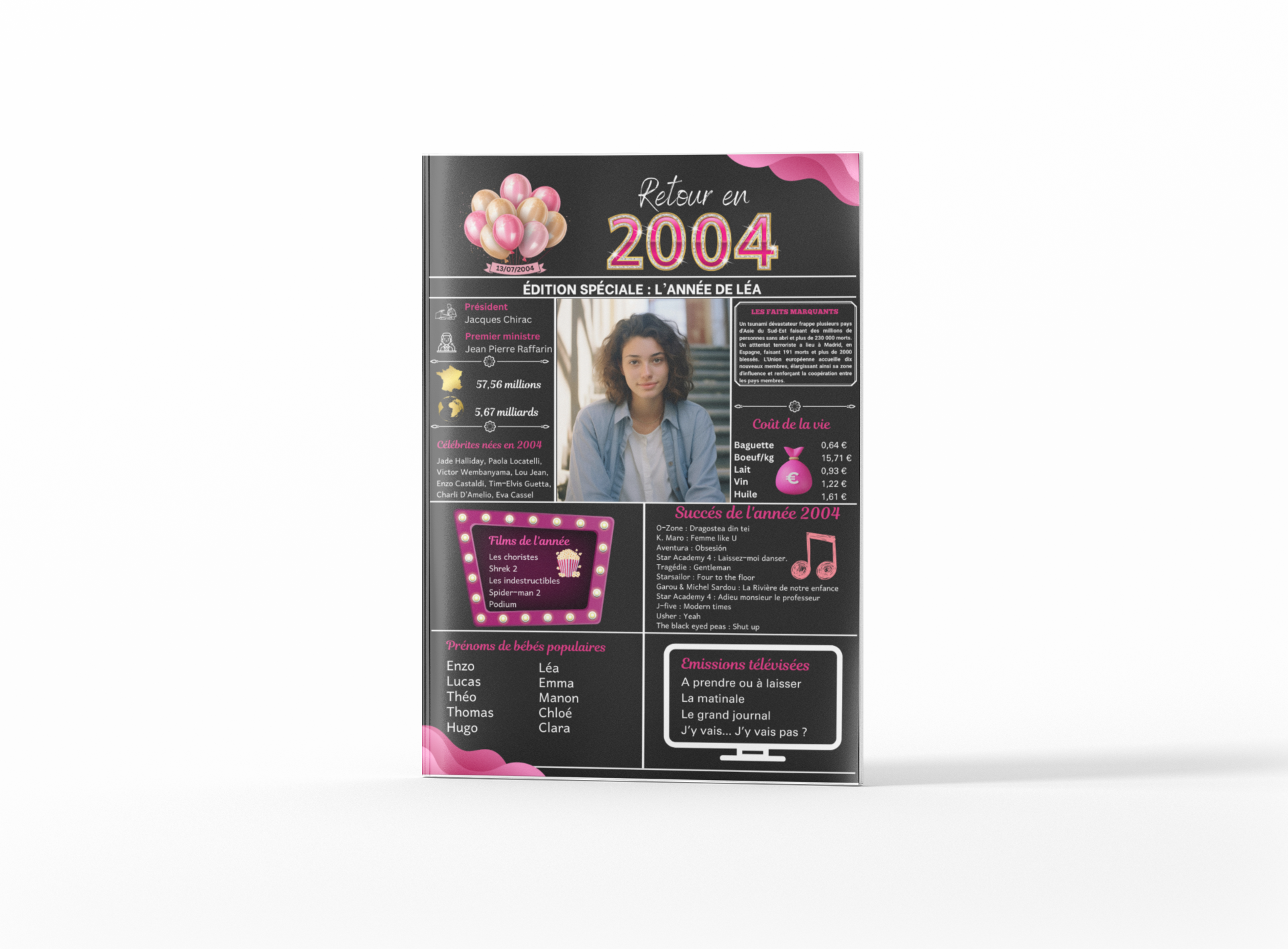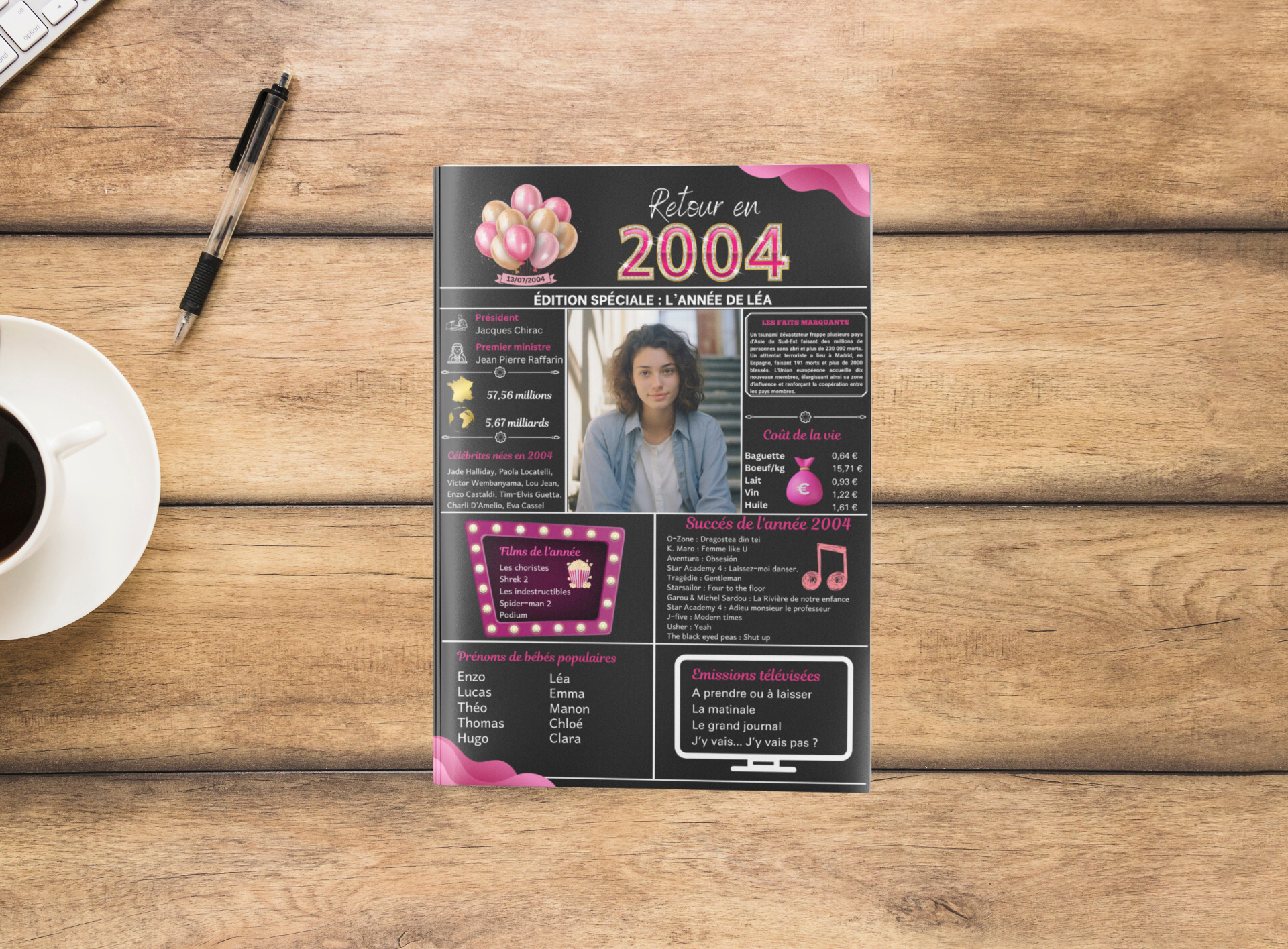 Livre d’Or Noir Rose Personnalisé Retour 2004 avec Photo et Texte : Idée Cadeau Unique pour Anniversaire, Mariage, Noël, 20 Ans