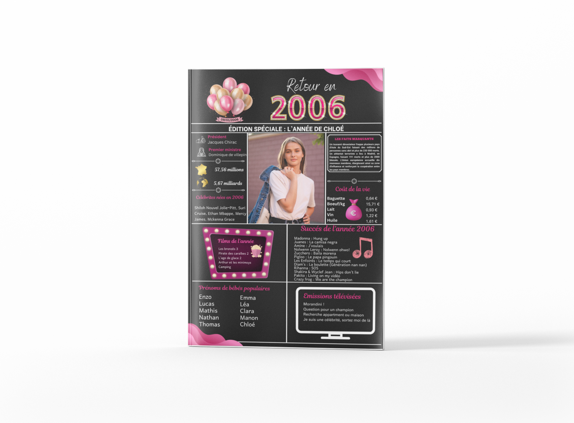 en couverture une affiche rétrospective des événements marquants de l’année de naissance du