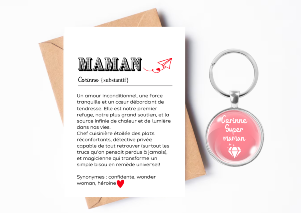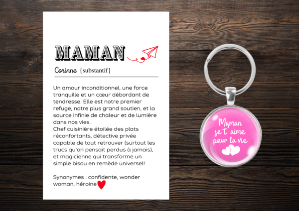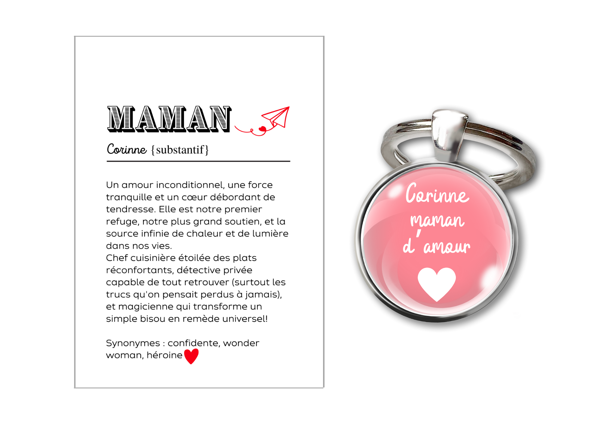 Ce porte-clés spécialement conçu pour « Maman » est bien plus qu’un simple accessoire : il est un symbole d’amour et de gratitude. Accompagné d’une carte de définition touchante, ce cadeau exprime tout le respect et l’affection que l’on ressent pour une mère, cette figure centrale de la vie. Idéal pour montrer à votre maman combien elle est aimée et précieuse.