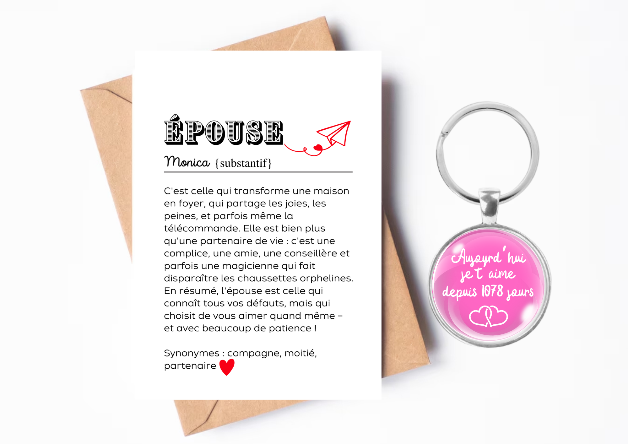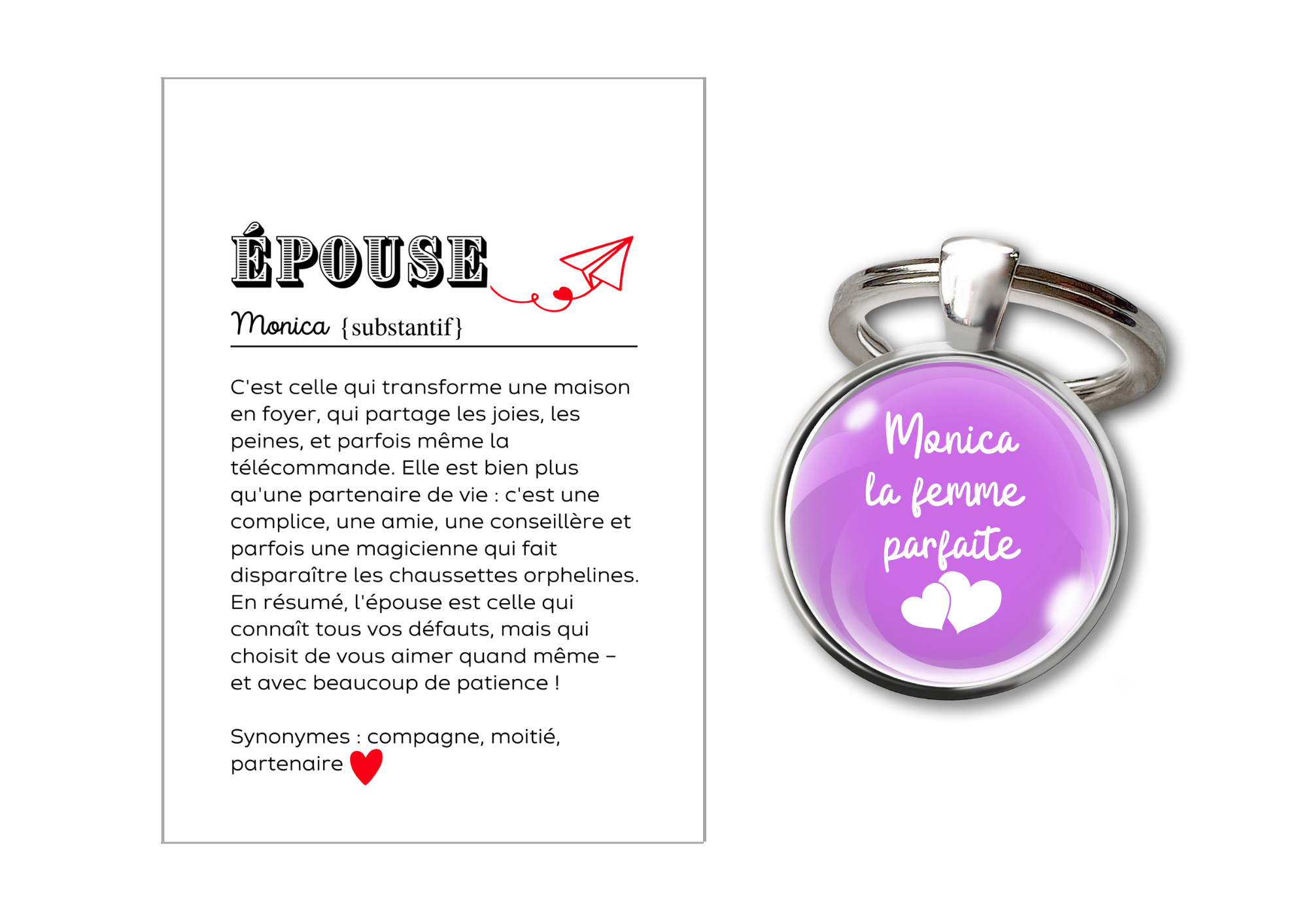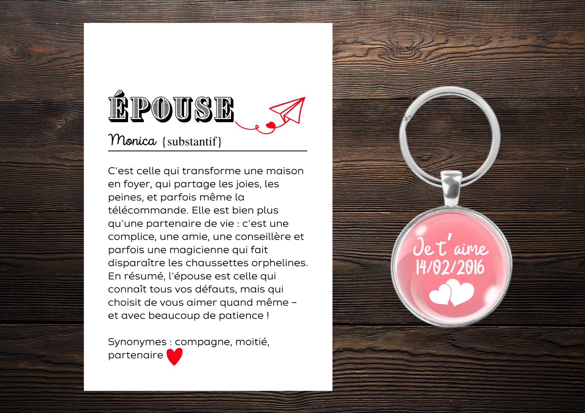 Ce porte-clés est le cadeau parfait pour exprimer tout l’amour et la reconnaissance que vous ressentez pour votre épouse.