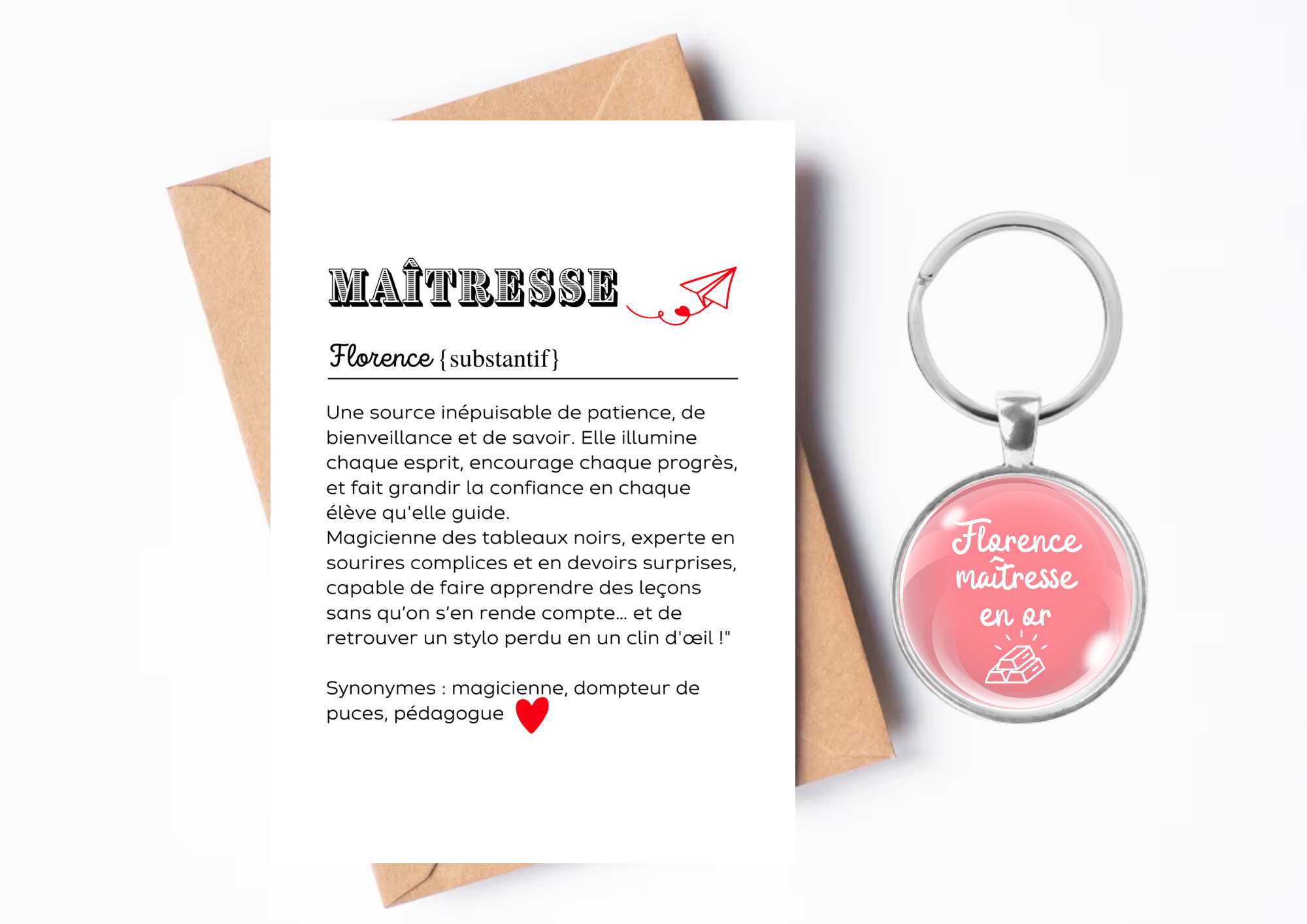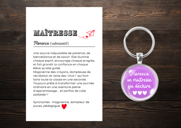 Ce porte-clés est le cadeau parfait pour exprimer toute la gratitude et l’affection envers une maîtresse qui a su marquer l’année par son dévouement et sa bienveillance.
