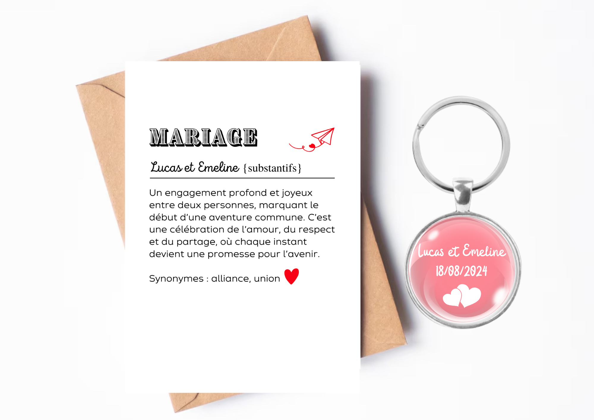 Accompagné d’une carte de définition émotive, il symbolise l’amour, l’engagement et le début d’une nouvelle vie à deux.