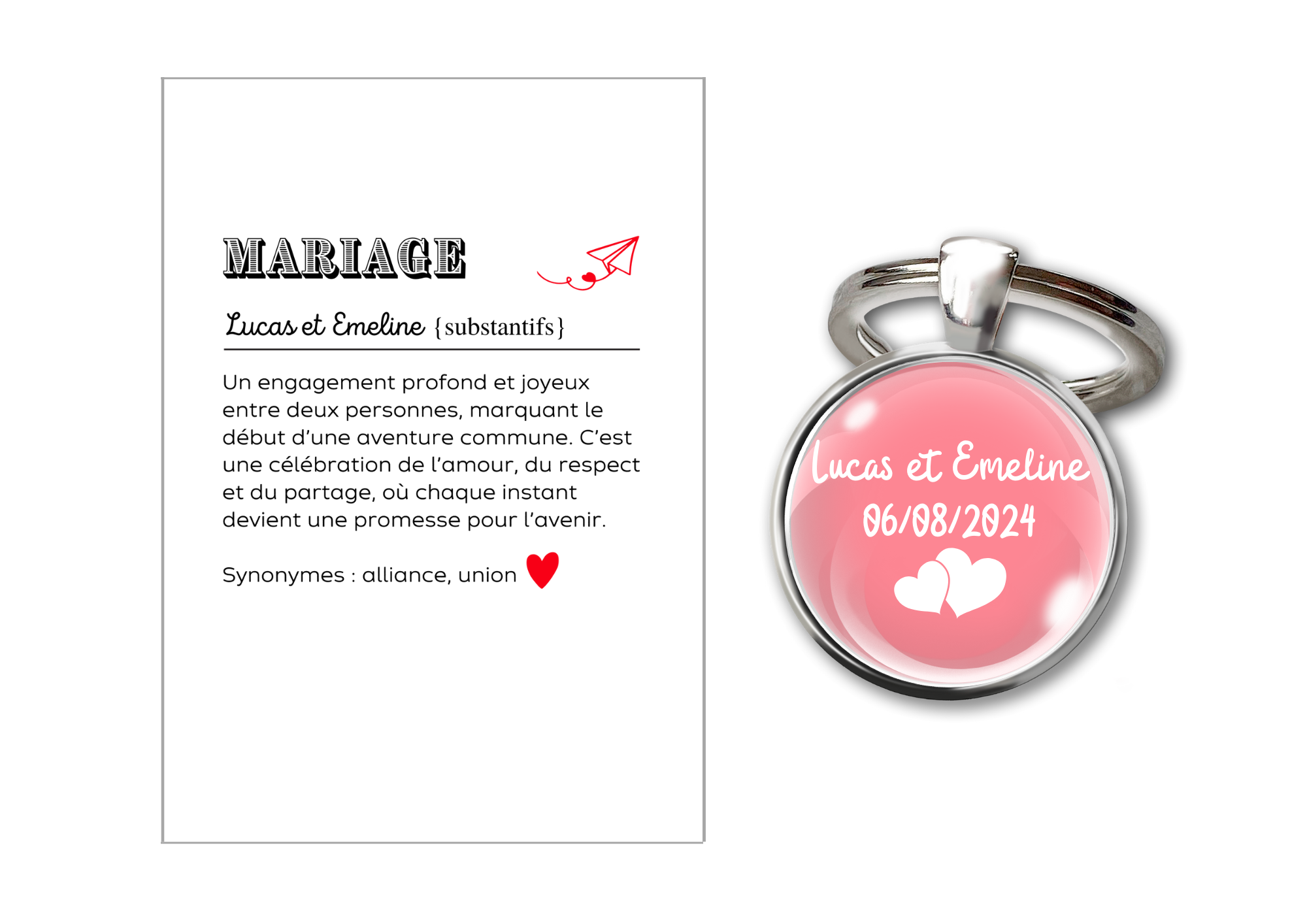 Ce porte-clés est un cadeau idéal pour célébrer un mariage ou offrir en souvenir aux mariés.