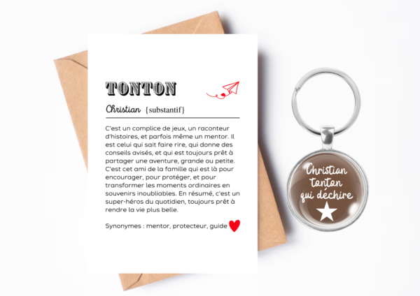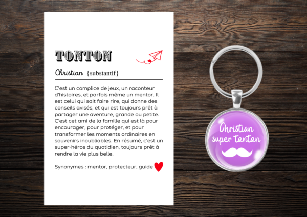 Un porte-clés spécial dédié à « Tonton », ce membre de la famille qui joue souvent un rôle unique et précieux.