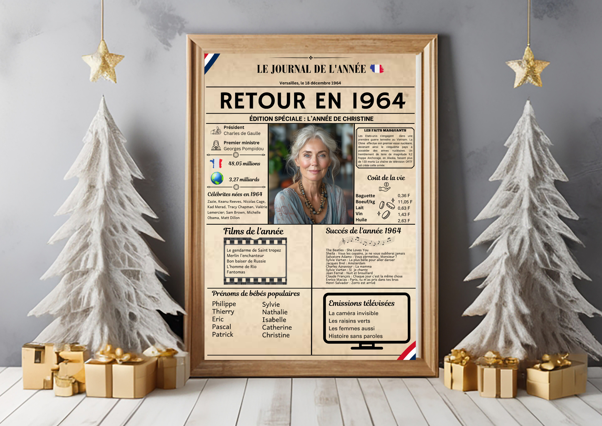 Affiche anniversaire 1964 personnalisable disponible pour les années 1924 à 2024 imprimé A4 A3 sans cadre Idée cadeau