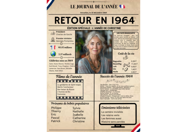 Soyez le premier à laisser votre avis sur “Affiche anniversaire 1964 personnalisable disponible pour les années 1924 à 2024 imprimé A4 A3 sans cadre Idée cadeau”