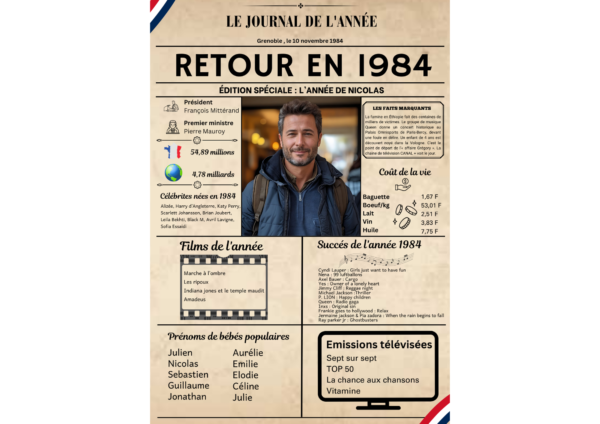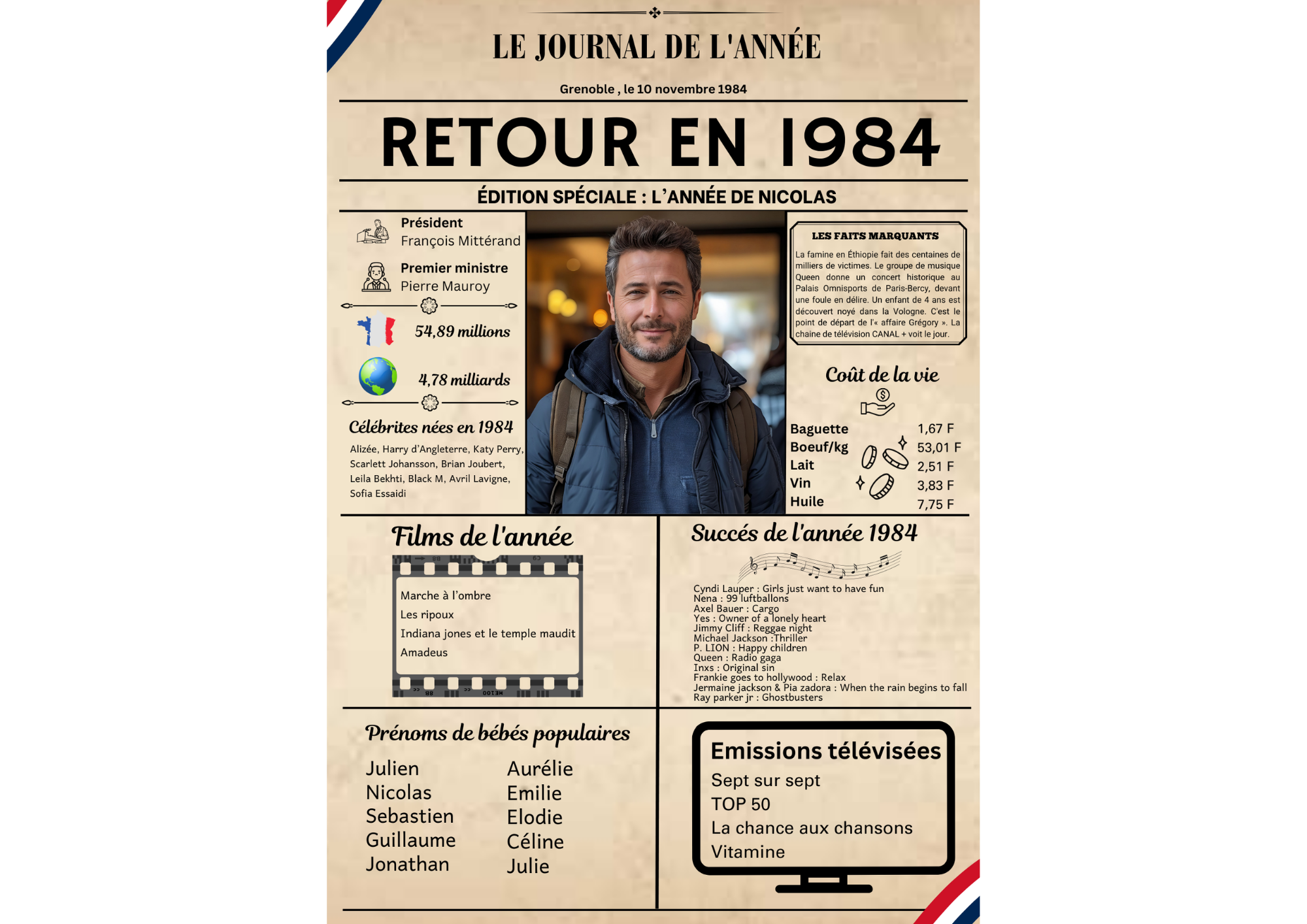 💝 Cette affiche personnalisable saura toucher son destinataire droit au coeur en lui remomérant les évenements et les moments clés de son année de naissance, de mariage, de rencontre, etc.